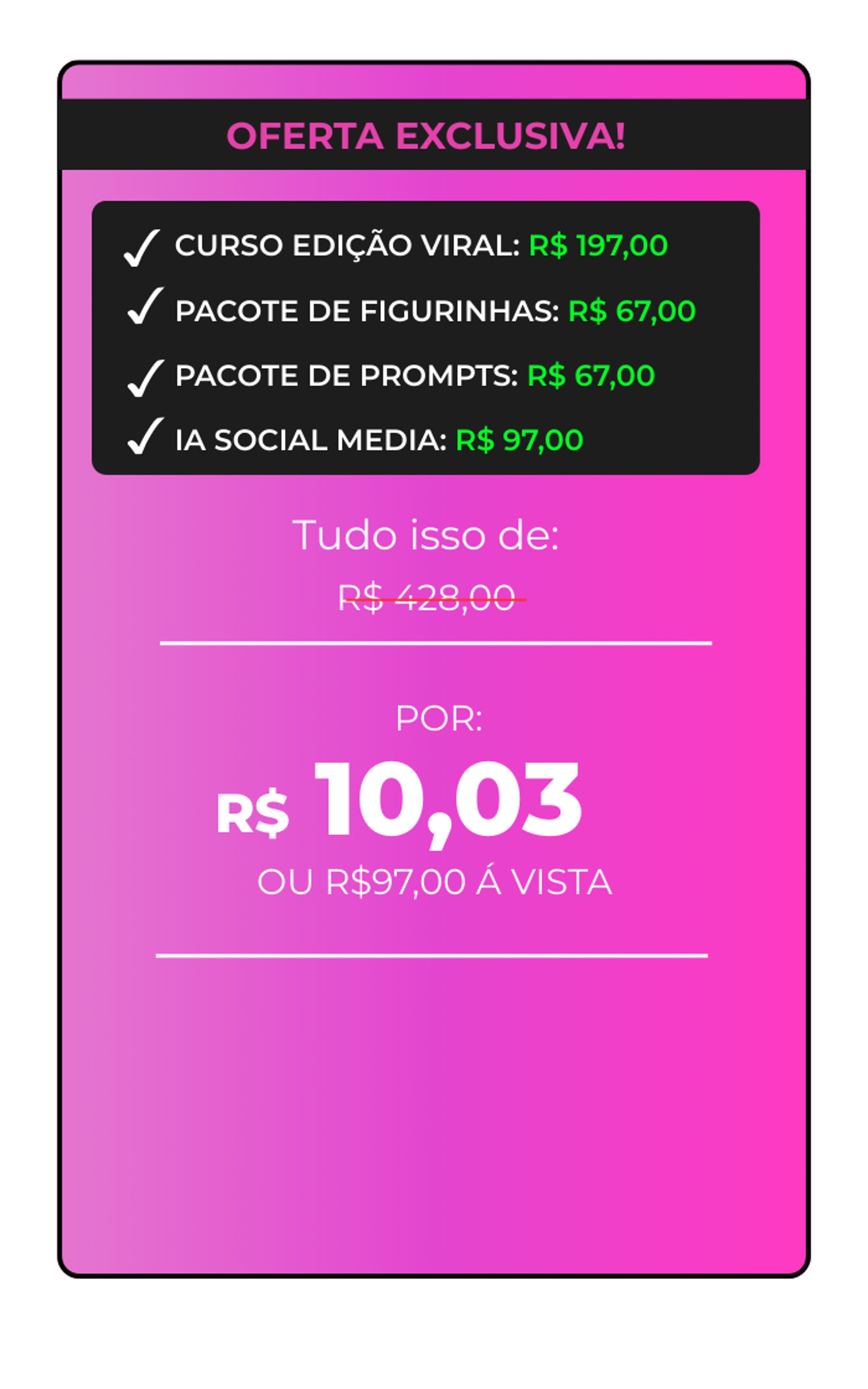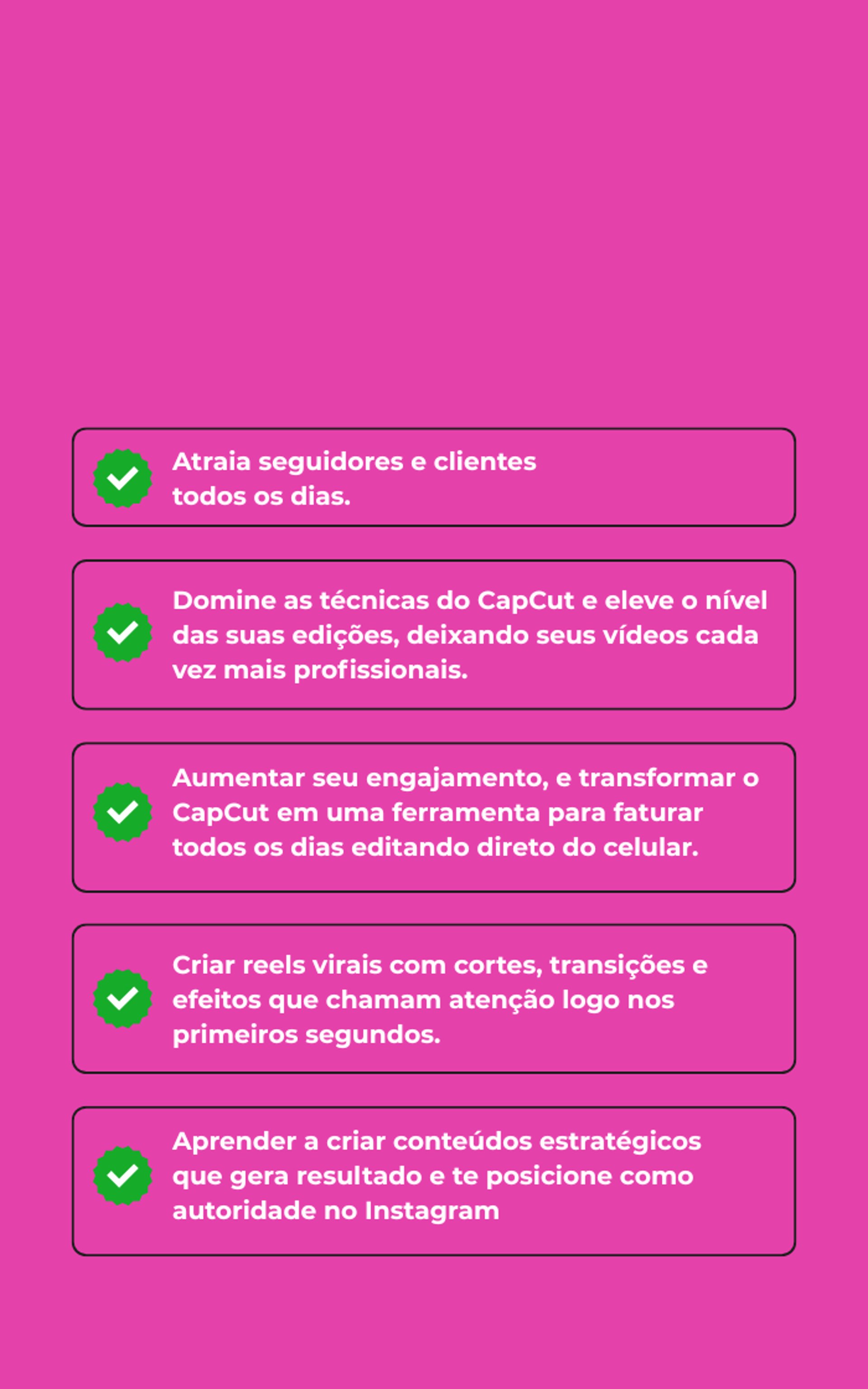 Você entende o porquê de cada edição e como usar isso de forma estratégica para ganhar seguidores de verdade e vender cada vez mais.