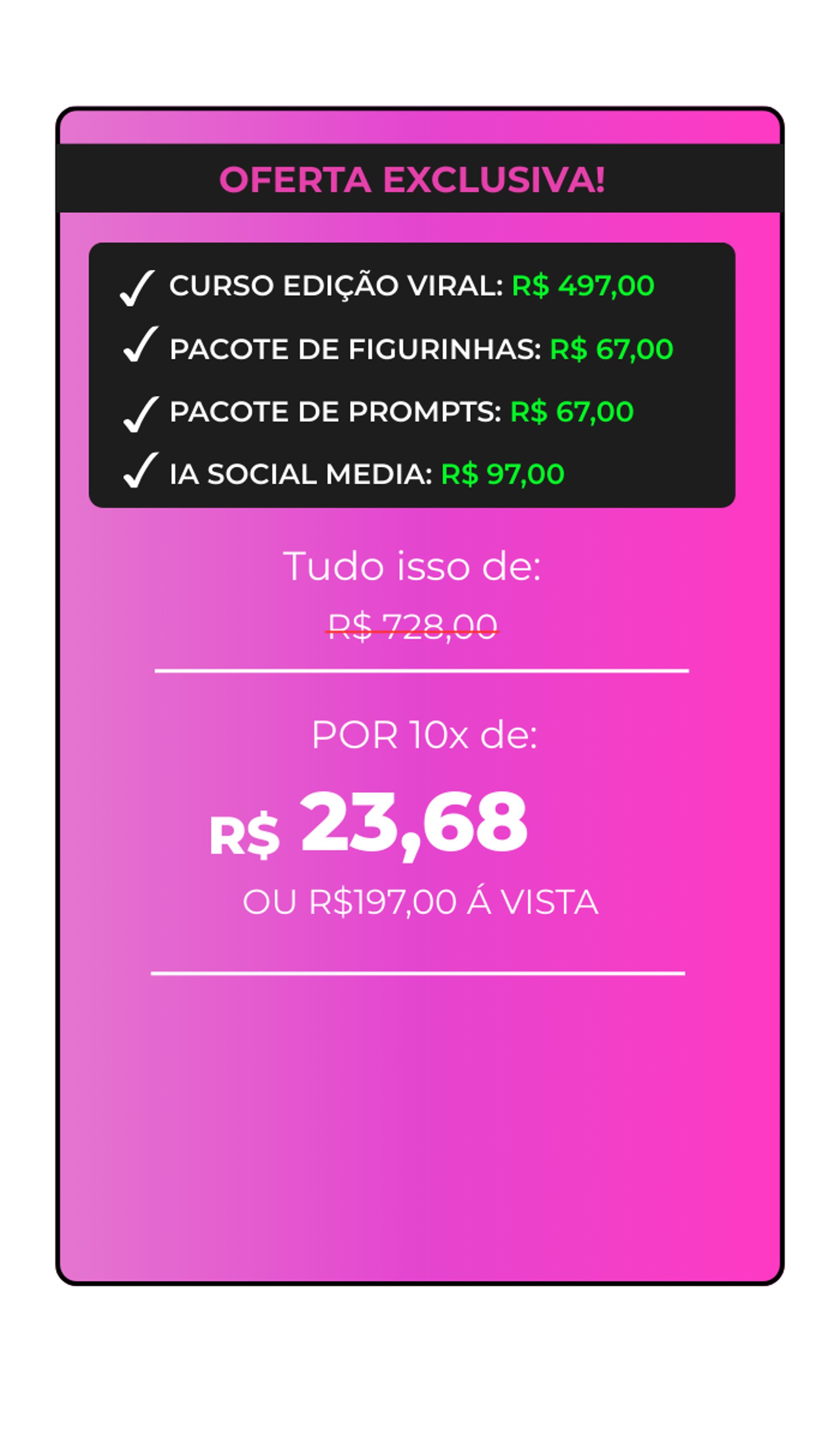Você entende o porquê de cada edição e como usar isso de forma estratégica para ganhar seguidores de verdade e vender cada vez mais.